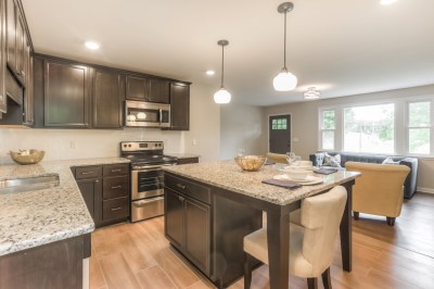 This house is small and we had to be creative with where to place an eating area. Having a custom island made that can seat 4 was our answer.