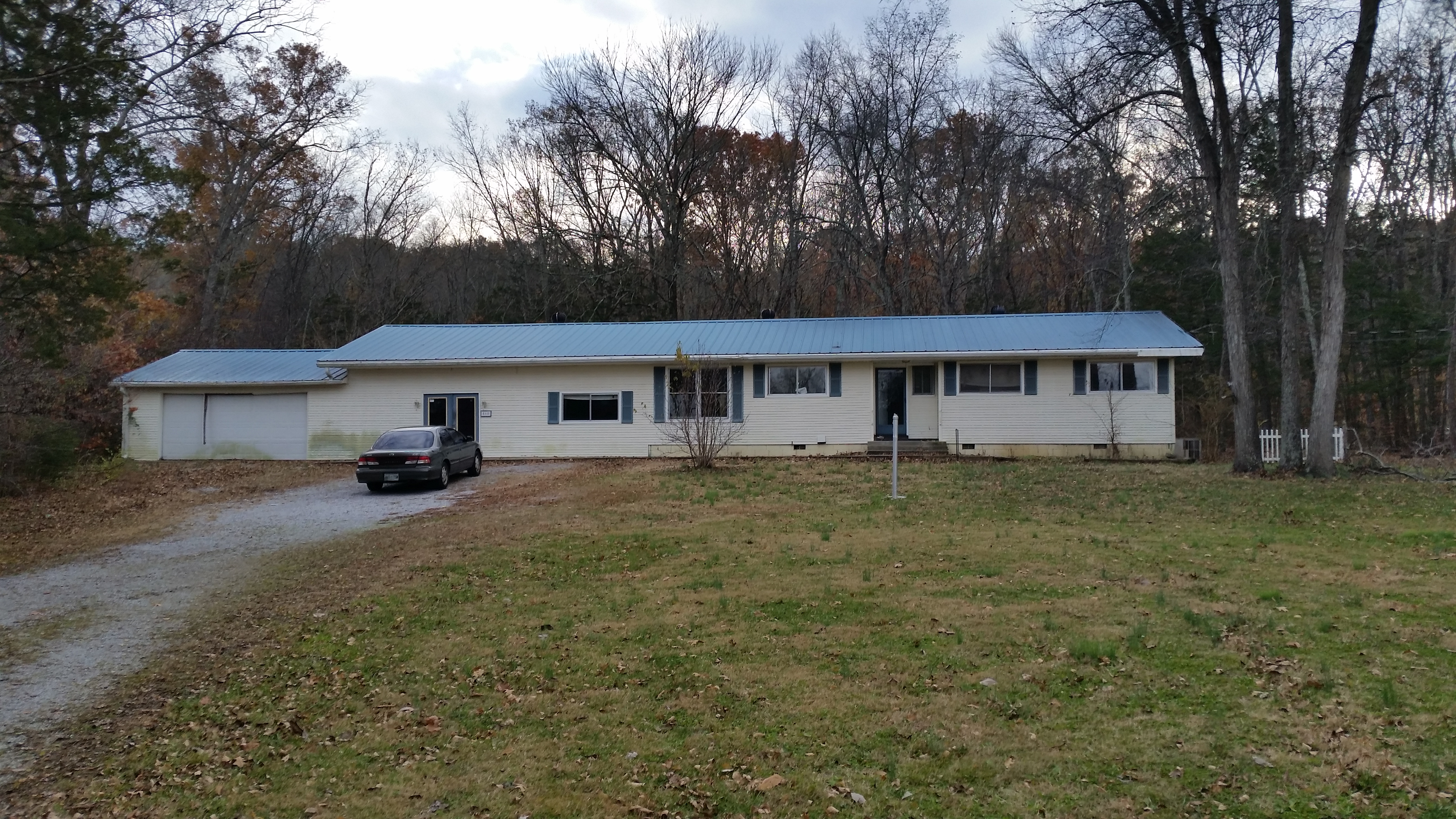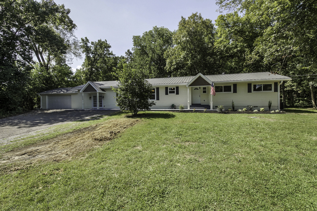 Before. Ugly, right? Kind of looks like a modular home or trailer, but it’s not. Our challenge here was to figure out how to beautify it, and lessen the “trailer” look to it. Notice all the random sized windows, two front door entrances, and the light blue roof.