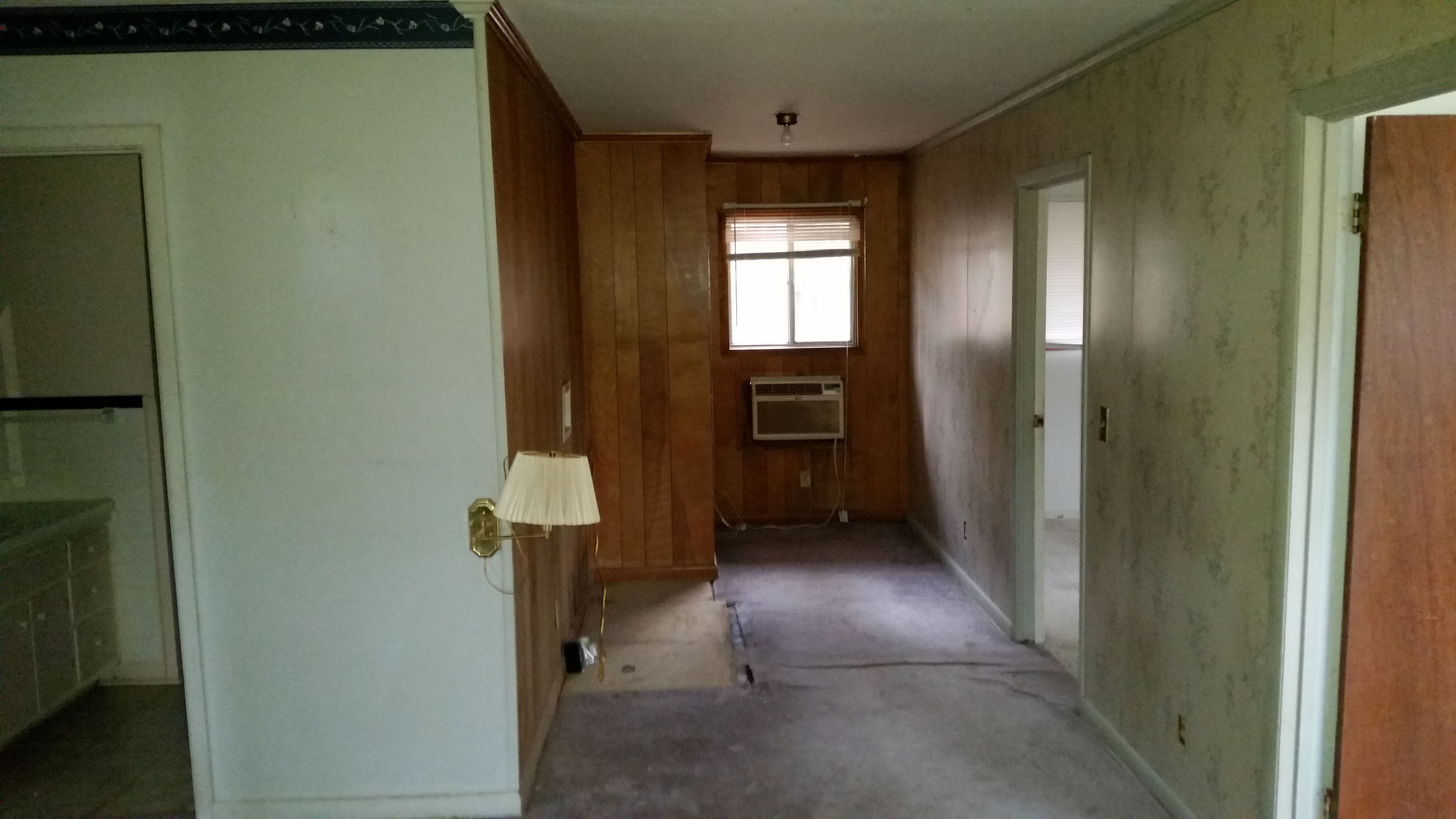 This was the dining room before. Complete with a window ac unit, and old radiant wall heaters.