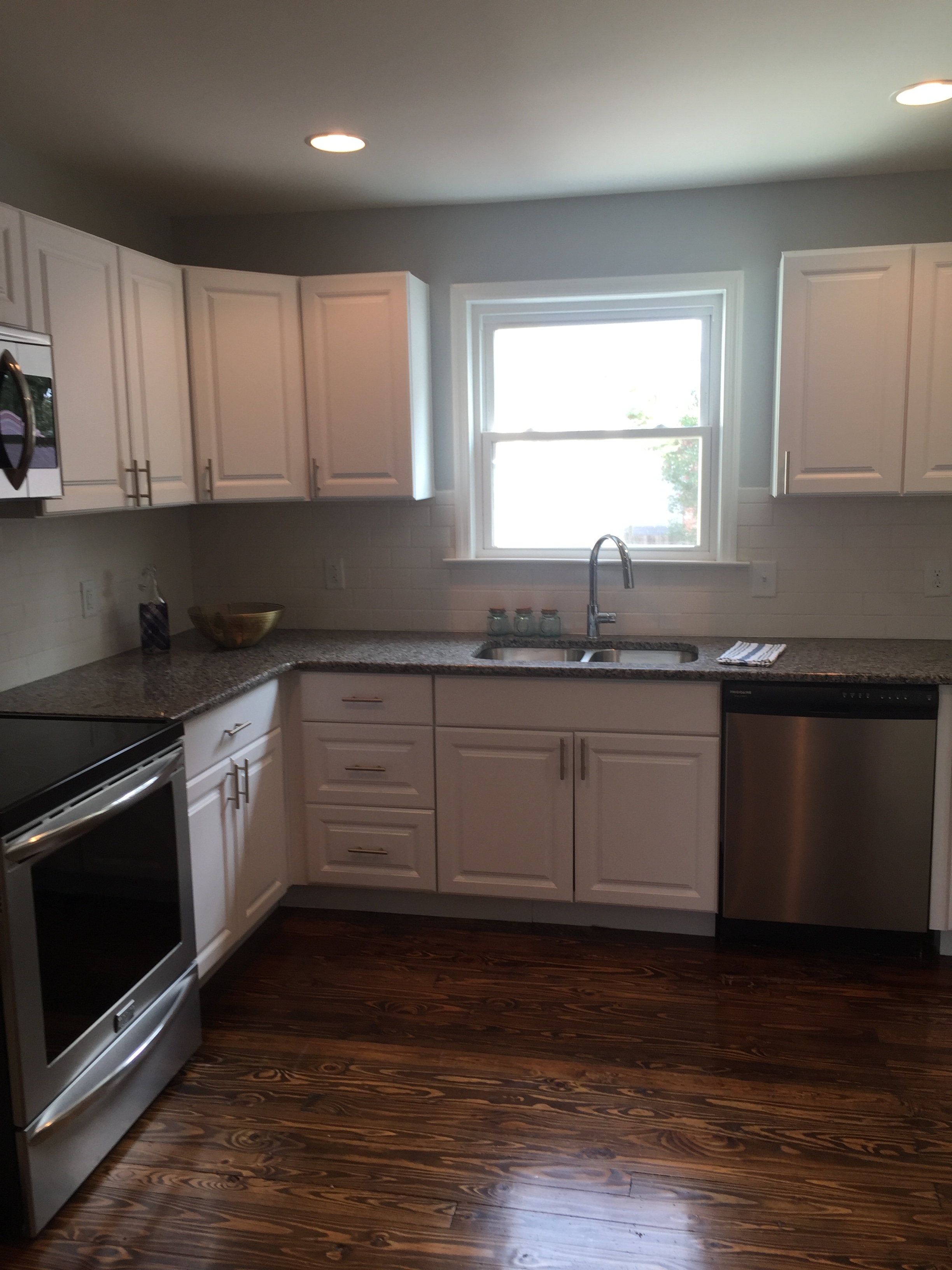 This is the view from the front door, immediately upon walking into the house. Notice those pretty floors? Stainless appliances, granite, and new cabinets?
