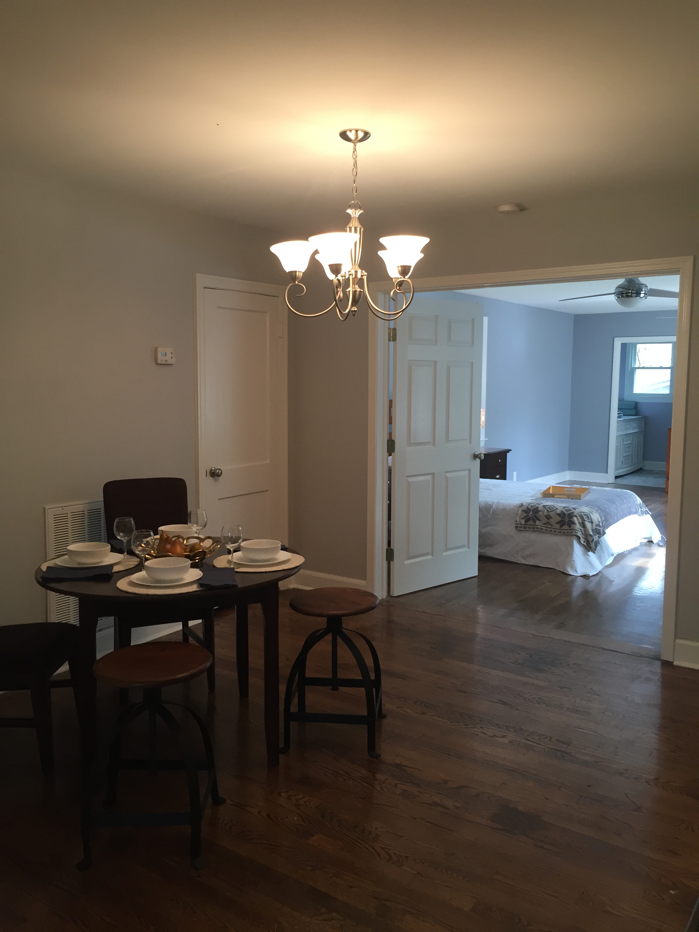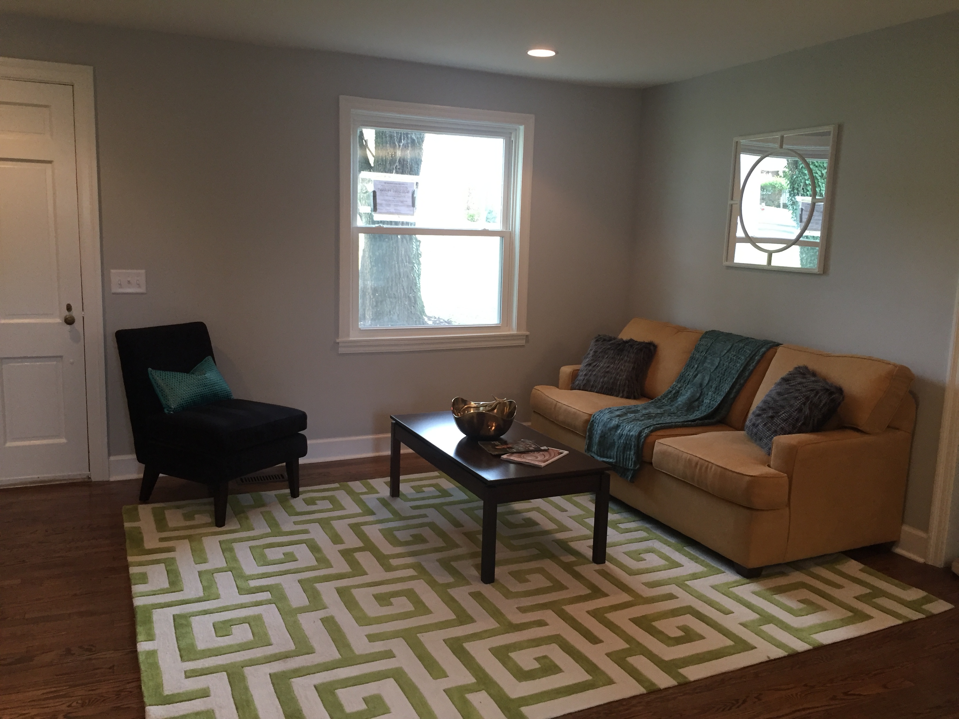 This anti cookie cutter charmer is a 4 bed, 2 bath home, and it was vacant along with being newly renovated. One of the reasons it is so important to stage a renovated home, is to give potential buyers something to focus on other than the quality of the renovation. Some buyers can be wary of the stigma of a “flipped” house, and if given nothing else to focus on in a vacant property, they will start to nit pick apart any little flaws in the renovation. You do not want a buyer focusing on a chip in a paint job, or nail holes not filled in, etc. etc. If you stage the home with furniture, buyers are more likely to focus on cute furnishings and accessories, as opposed to any potential flaws. “Oh look honey, I just love these pillows”, as opposed to “Oh my gosh, did you see where the paint is peeling on that door over there?!”.