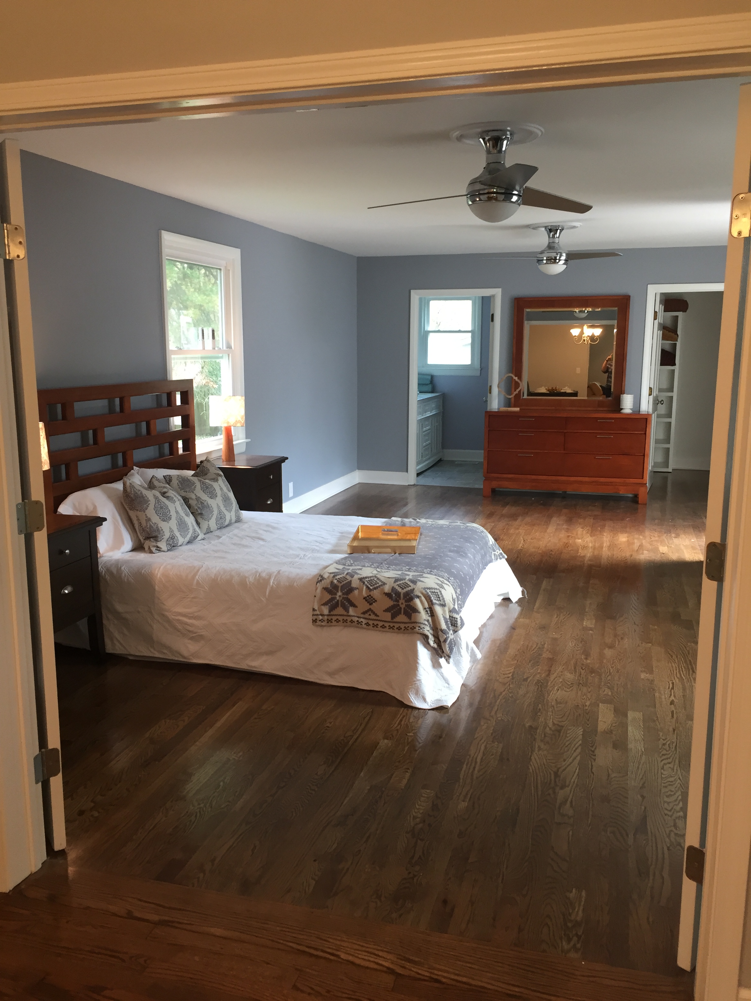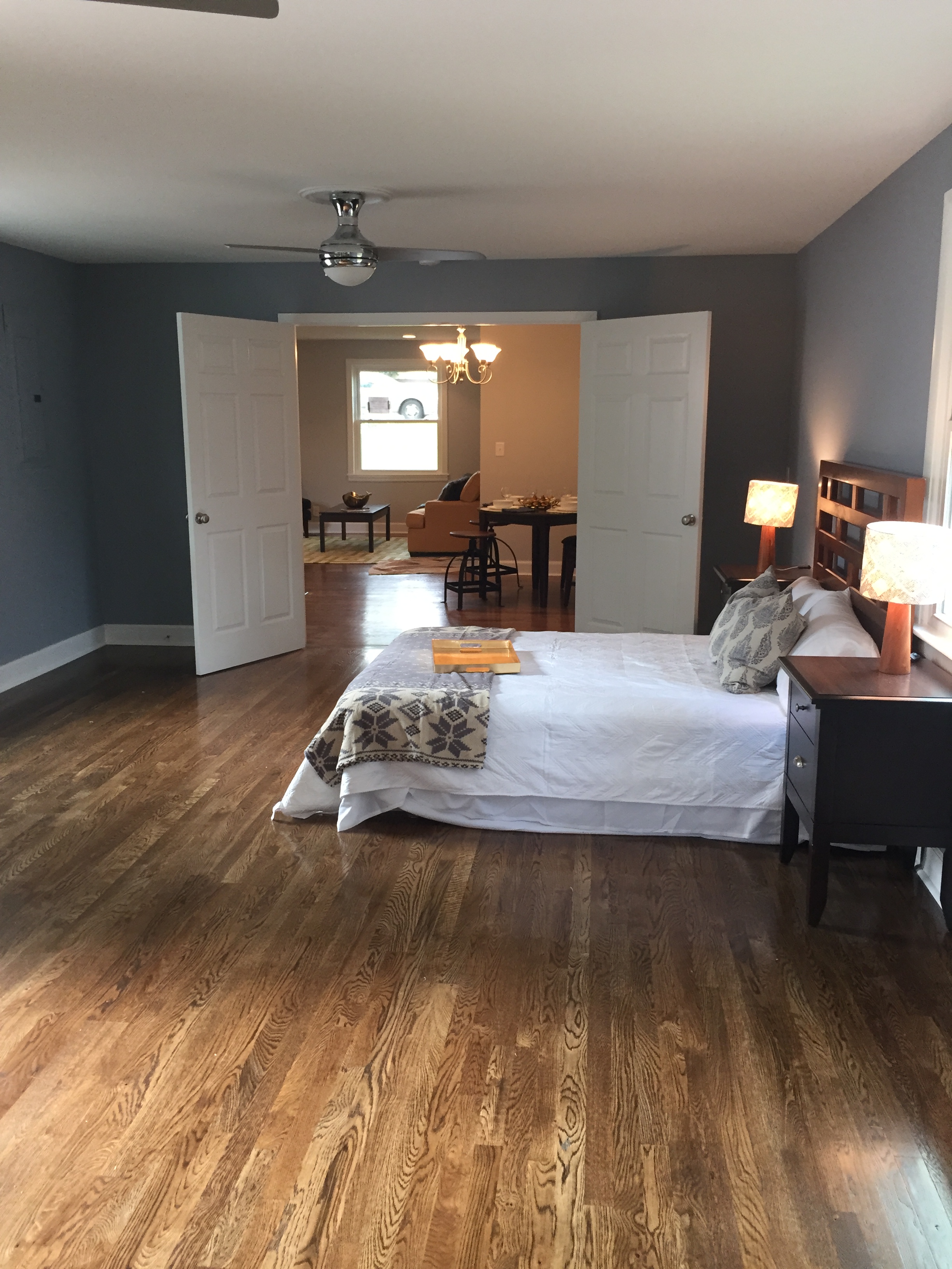 Master bedroom before. Spacious, but not immediately apparent HOW big it truly is (without furniture), and also is a little confusing as to where to place furniture.