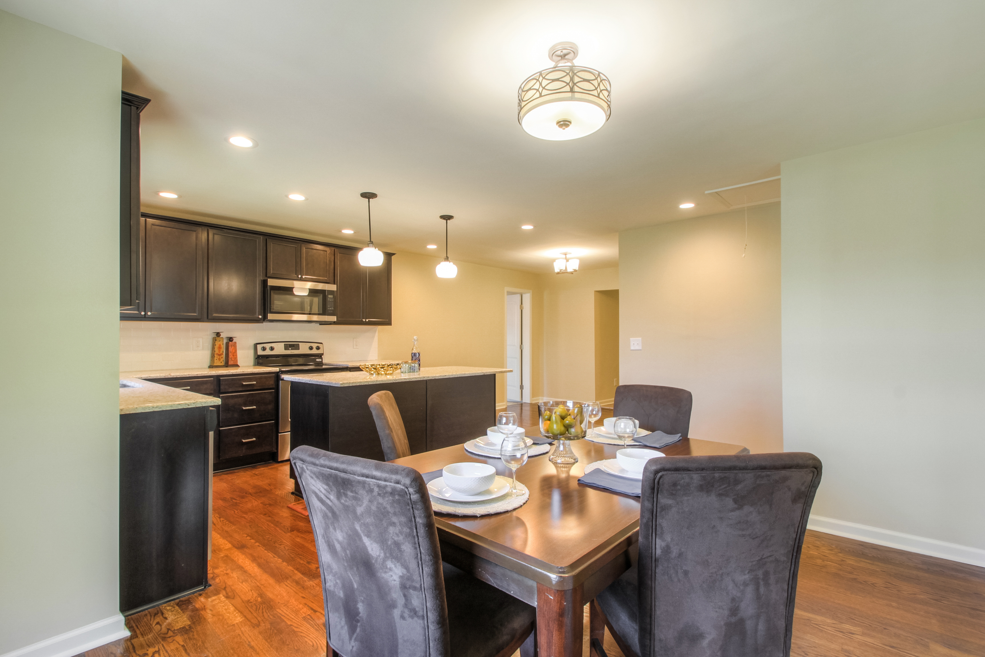 We opened the wall, added nice granite, a subway tile backsplash, plenty of recessed & updated lighting and fixtures, stainless appliances, new cabinets, and refinished the hardwood flooring. Now it’s open and beautiful!