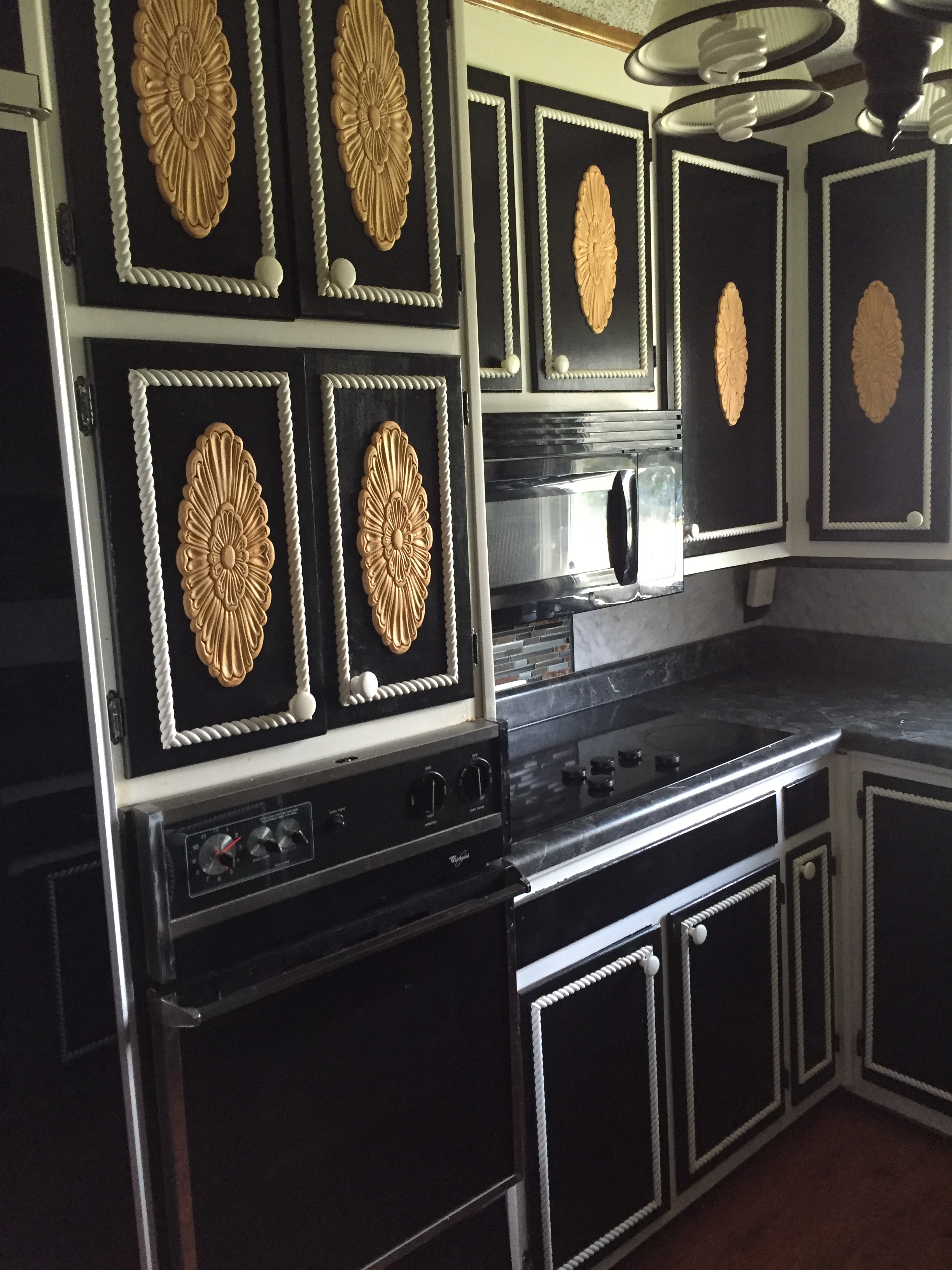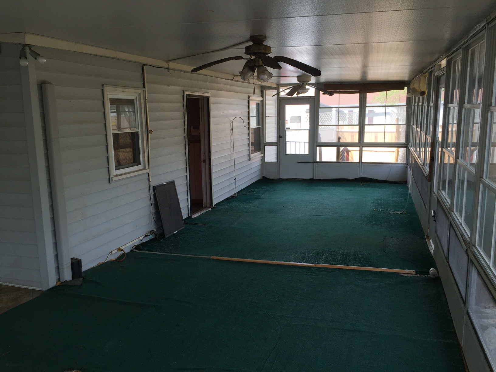 That’s our little pile of leftover materials that unfortunately made it into the picture, but will be taken out before we list. Cleaned, new indoor/outdoor carpet, and new LED fans.