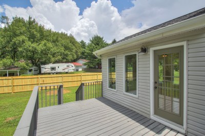 We added a long privacy fence to establish the boundary between us and the neighbors, and to provide privacy. We fixed the deck, and repainted and repaired the all over trim, shutters, and doors. New mulch, flowers, and a flag completed the effect.